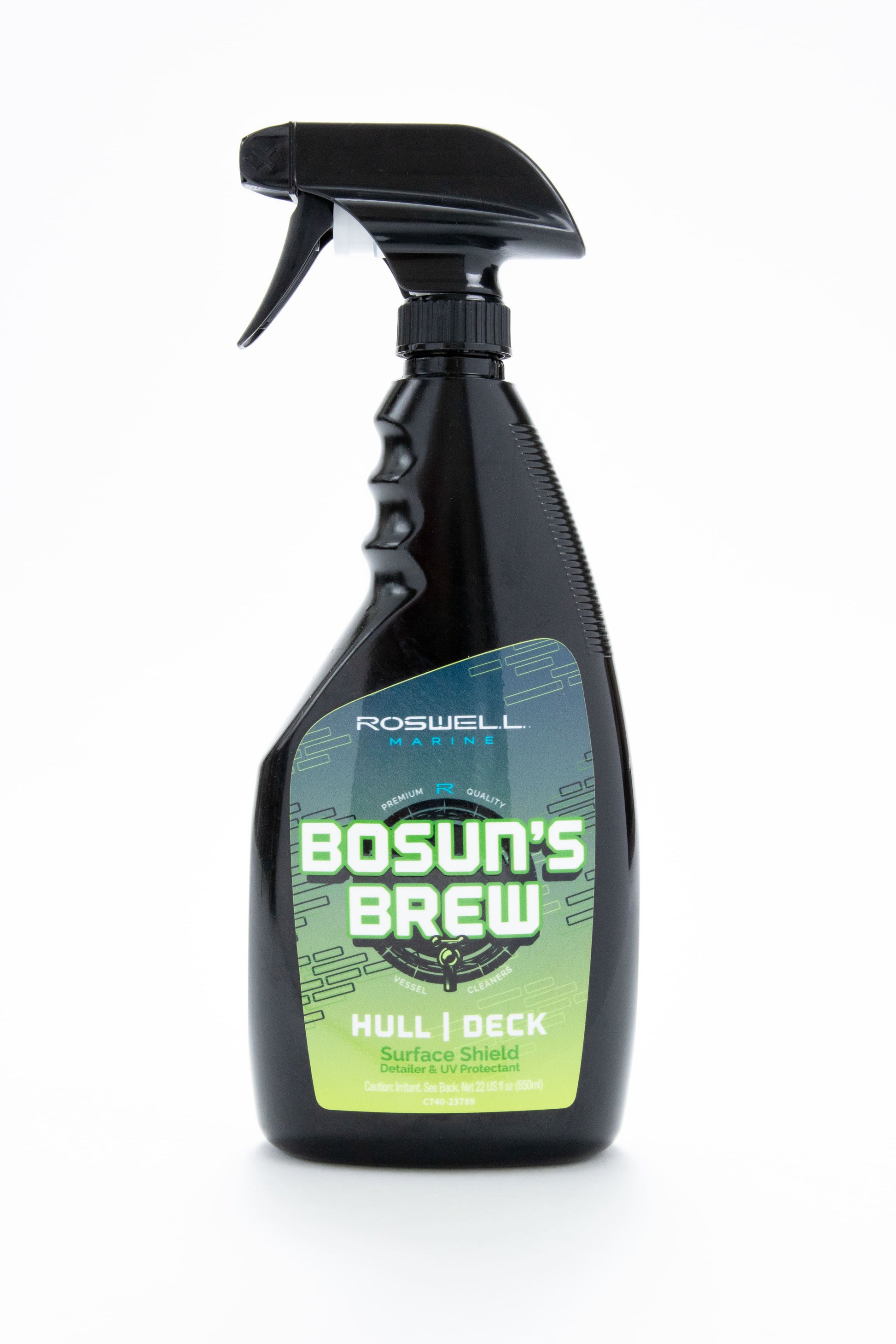 Bosun’s Brew Hull | Deck Surface Shield quickly cleans, adds shine and protects all deck and hull surfaces. PTEF polymers bond to surfaces to enhance color and provide a protective barrier to prevent UV damage. Scented with fresh berry notes.
