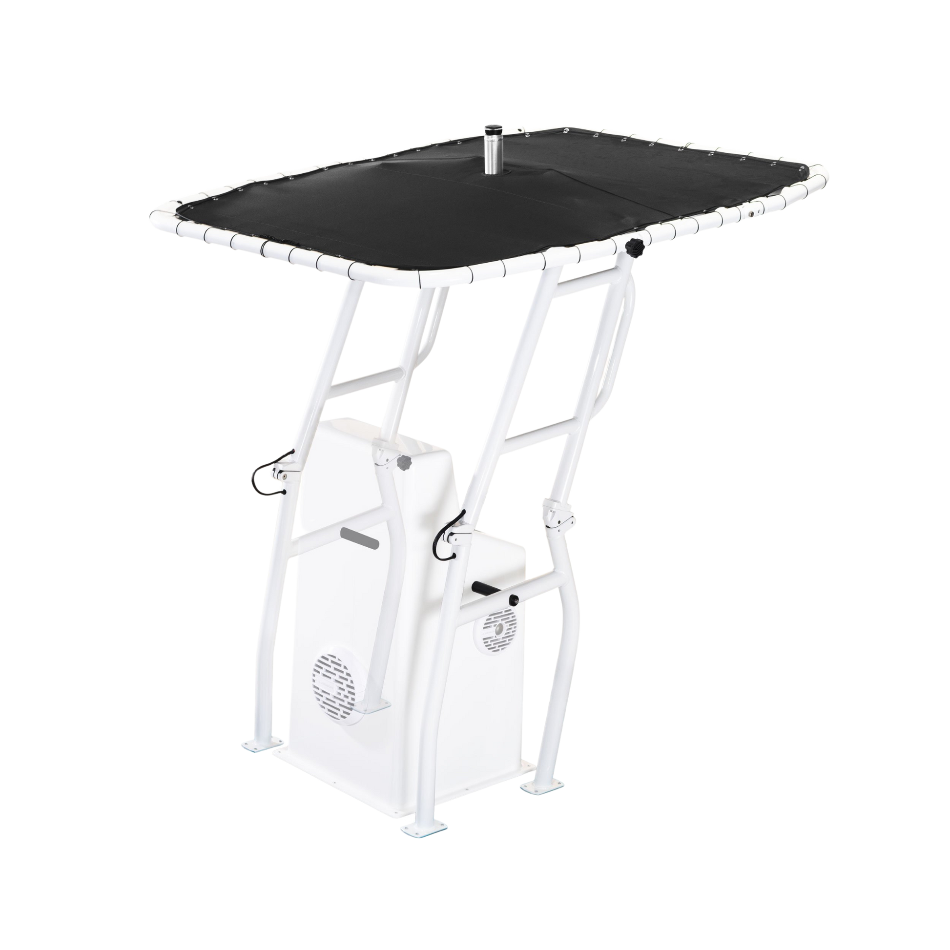 Introducing the worldʼs first weight-assisted universal folding T-Top for center console boats with the all-new Roswell UNI-T. This unique design is fully adjustable to fit a wide variety of consoles, maximizing space and function with the ability to easily fold forward to a lowered height of 60 in (152cm) from the deck. Roswellʼs patented weight-assist technology is integrated to give users the ability to easily fold the UNI-T for overhead clearance during storage or when passing underneath bridges. Created for maximum compatibility and convenience, the UNI-T features a compact footprint and distinct lines that compliment center console boats of all sizes.